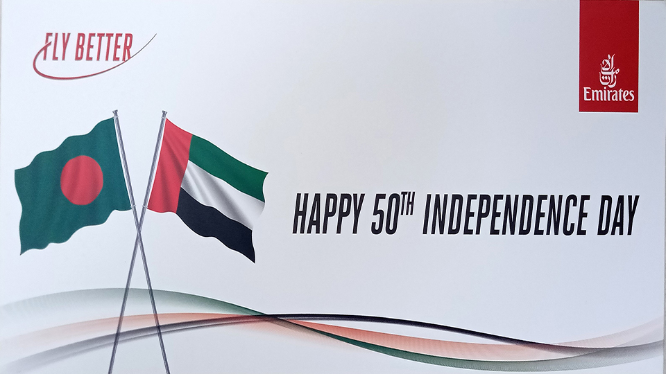 Passengers travelling on flight EK 583 also received bespoke branded boarding passes, marked with “Happy 50th Independence Day”.