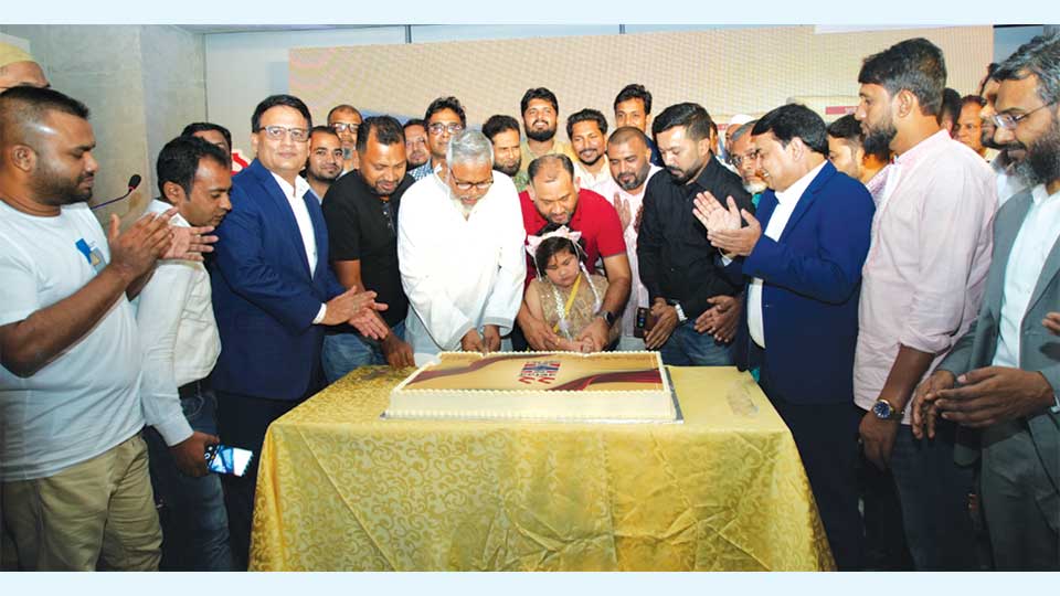 Sheikh Jasim Uddin, Managing Director, and other high officials of AKIJ Resource, seen cutting a cake to celebrate the company’s anniversary