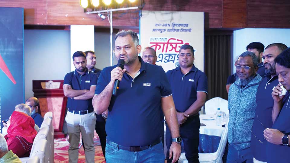 Sheikh Jasim Uddin, Managing Director, AKIJ Resource, seen addressing his staff and guests at a program in the capital