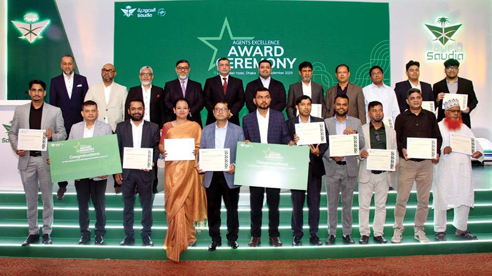 Dhaka : Saudia, the national flag carrier of the Kingdom of Saudi Arabia, hosted its Agents Excellence Award Ceremony in Dhaka to honor its top productive travel agents in Bangladesh for their outstanding contributions during the year 2024. The ceremony celebrated the vital role of travel partners in Saudia's growth and highlighted their contribution to expanding the airline's market presence in Bangladesh.