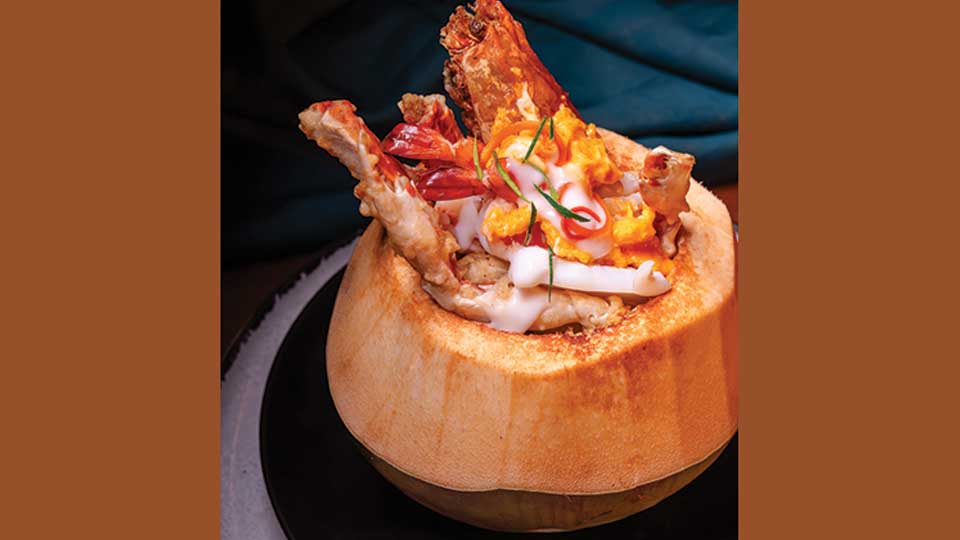 The menu is a delicious combination of soups -n-salads-n-seafoods, coupled with staples like rice and noodles. The popular appetizers include Roasted Duck Spring Roll,Chicken Larb, Sizzling Grilled Cuttlefish etc. Dimsum options feature a number of prawn and chicken items-Cheung Fun, Chicken Siumai, Steamed Prawn with Lime Sauce, are few of the favorites.