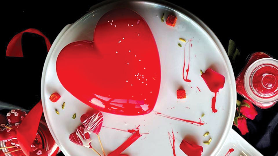 Restaurants offer many delightful offerings like this Scarlet Passion Delight Cake on Valentine's Day (top), and (bottom) beautiful flower bouquets are traditional items to gift on Valentine's Day