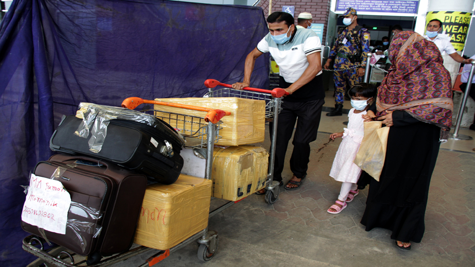 Expatriate workers arriving at Dhaka airport to catch their special flights back to their work destinations in the Middle East – Photo: Monitor