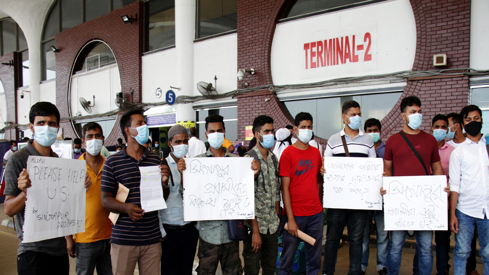 Today morning, many of them gathered at Dhaka airport with banners stating requests to launch special flights to Singapore allowing them to save their jobs before its too late.
