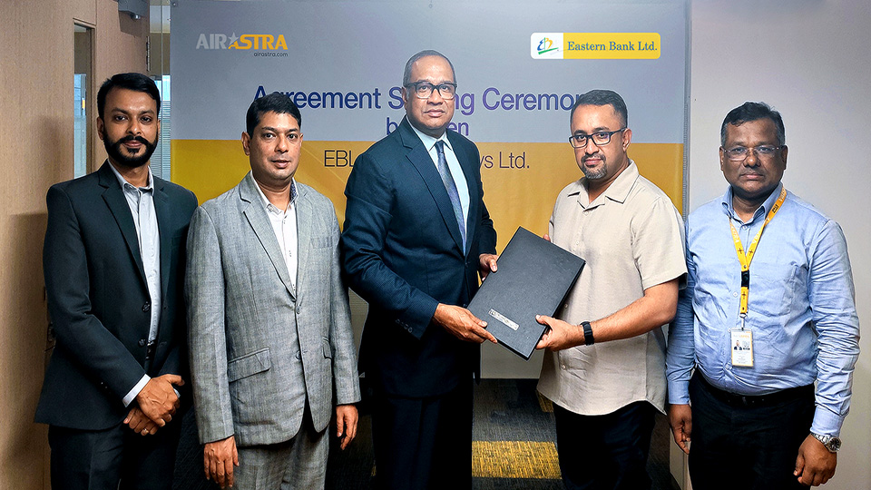M Khorshed Anowar, Deputy Managing Director and Head of Retail and SME Banking of Eastern Bank Ltd and Imran Asif, Chief Executive Officer of Air Astra signed the customer benefit agreement on behalf of their respective organisations.