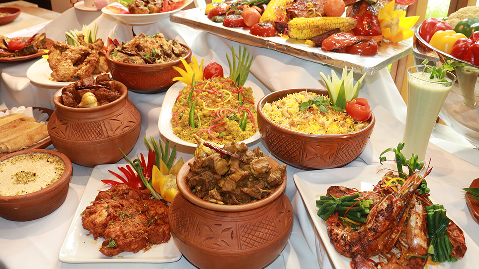The dessert experience is a celebration of indulgence, featuring Middle Eastern delicacies such as Om Ali, Kunafa, and Basbosa; traditional Bengali favorites including Mishti Doi, Firni, Gulab Jamun, Gurer Sondesh, and Shahi Tukra; and international treats like Panna Cotta, Creme Caramel, and Brownie.