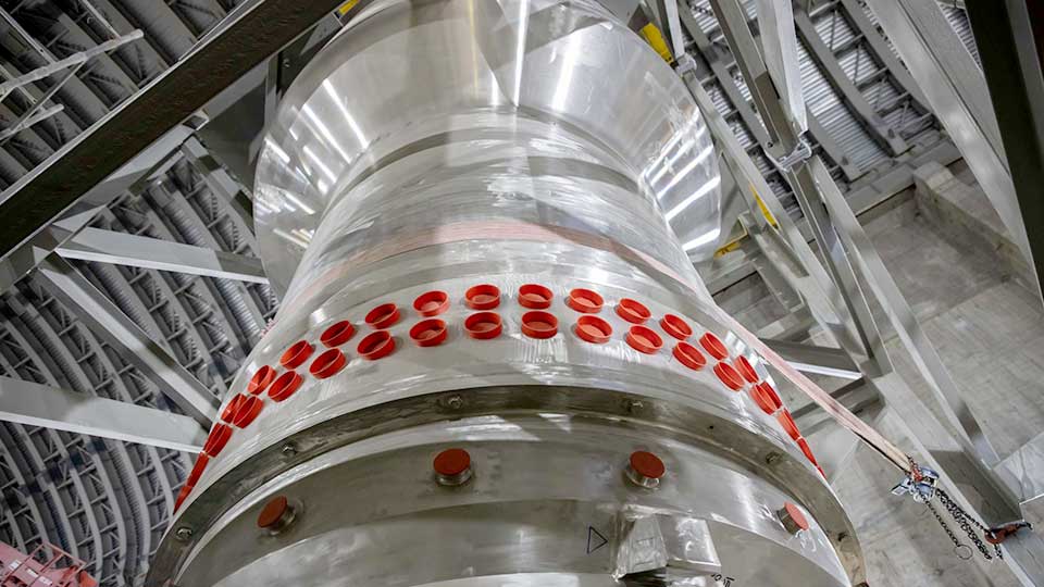 Mechanical equipment for the primary heat removal circuit and fuel handling systems for the research reactor is already being assembled. Two intermediate heat exchangers, weighing 38 tons and measuring 9 meters in height and 2.5 meters in diameter, were installed following the design specifications. The equipment was secured on support rings with a maximum deviation of 1 millimeter per meter from the horizontal. Additionally, drums for fresh and spent fuel, weighing 16 tons each, were positioned in their designated locations. Installation of the core catcher, an important component of the passive safety system is currently underway.