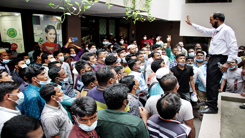 As a result, a huge crowd is being witnessed every day in front of Saudi Arabian Airline’s office in the capital from May 21 as several migrant workers are rushing to Saudia to ensure health insurance and hotel reservation for institutional quarantine.