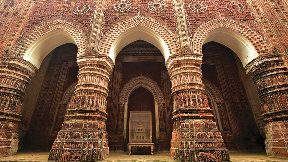 The temple consists of deities which depict the astonishing sense of reality, the endless panels of terracotta art embellishing and ornamenting the wall surface of the Kantaji Mandir, giving it a life and vitality of their own and are deeply imbued with the spirit nourished for thousand years on the silt-laden soil of Bangladesh.